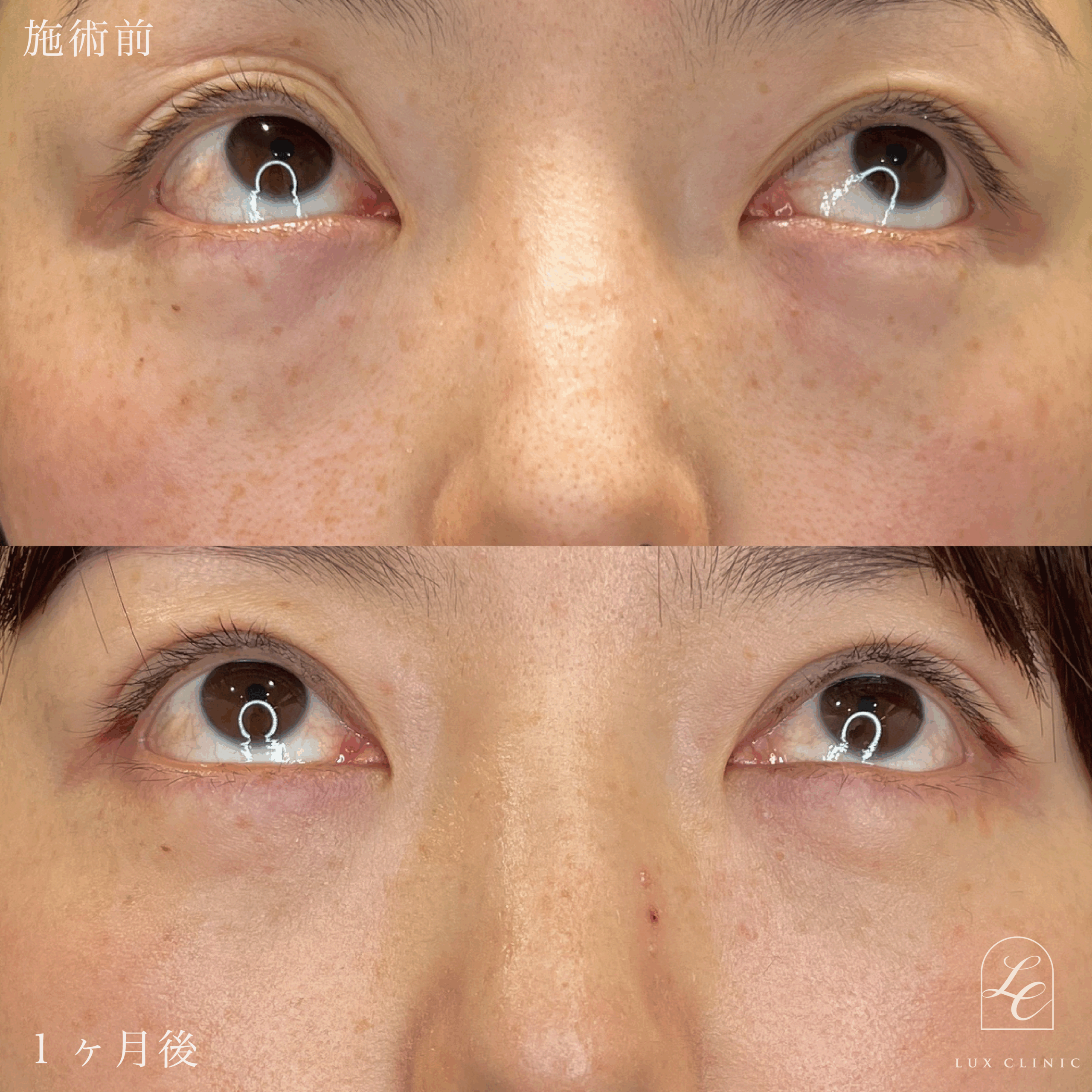 二重埋没法(クイックベーシック法 3点留め) + 目の下のクマ取り、ふくらみ取り(脱脂)術