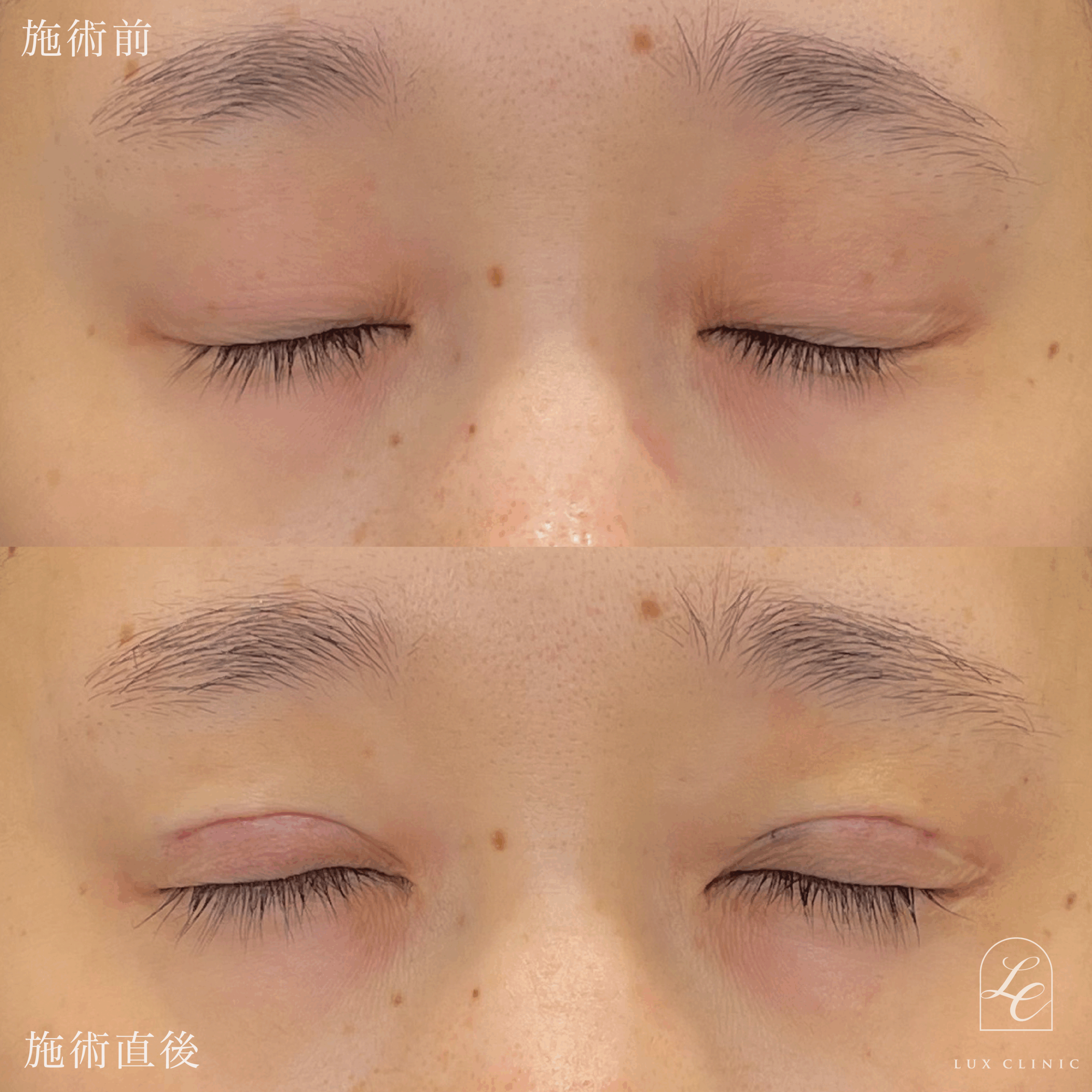 二重埋没法(クイックベーシック法 3点留め) + 目の下のクマ取り、ふくらみ取り(脱脂)術