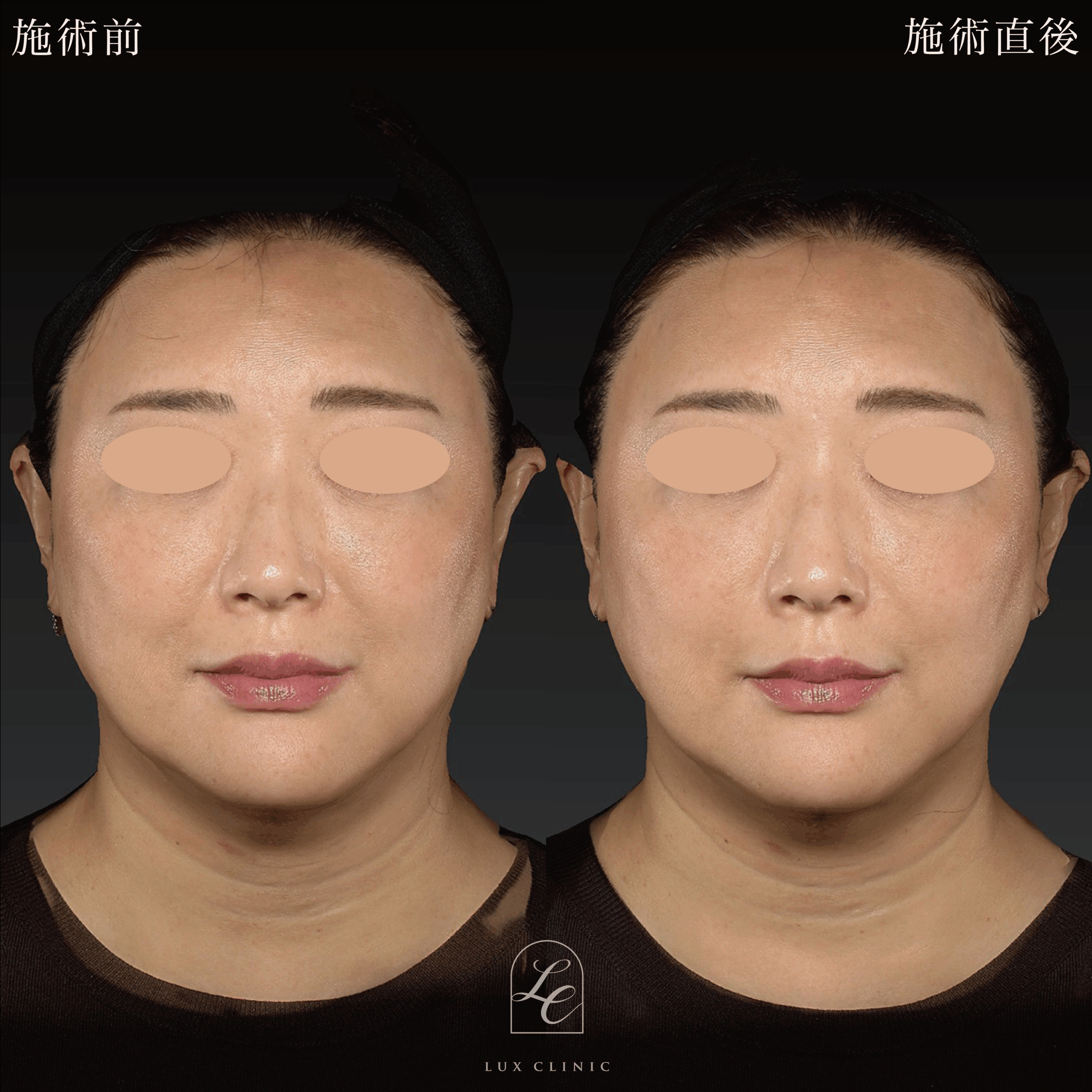 • HIFU<全顔、目周り>+ボルニューマー<全顔>+ヒアルロン酸(レスチレン 3本)<こめかみ、あご、ほうれい線>