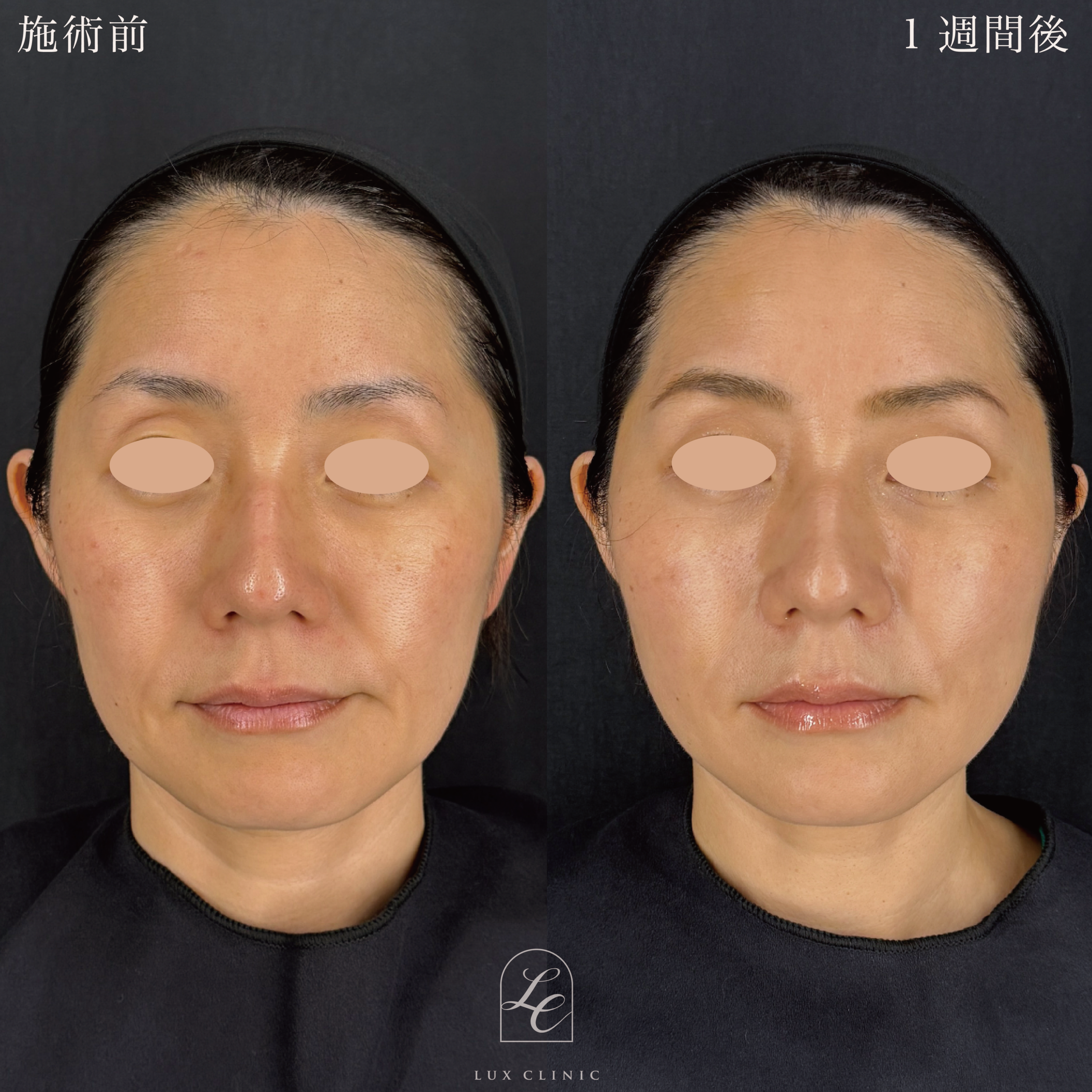• 糸リフト(テスリフト 8本)+ヒアルロン酸(レスチレン 1本)<鼻翼基部、額>